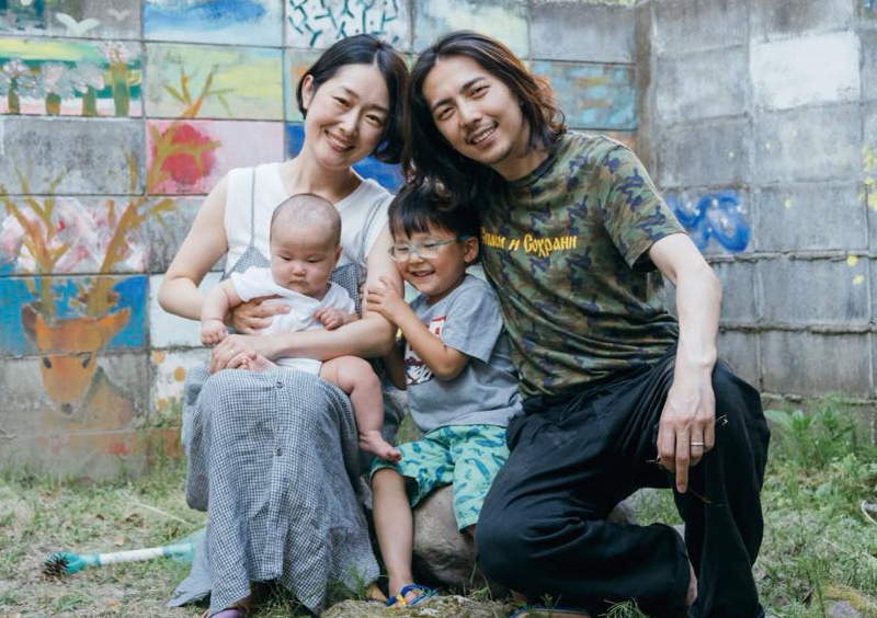 写真)乃波木さん(左上)と夫で画家の大森慶宣さん。長男の創晴くん(4歳)、次男の雪晴くん(1歳)